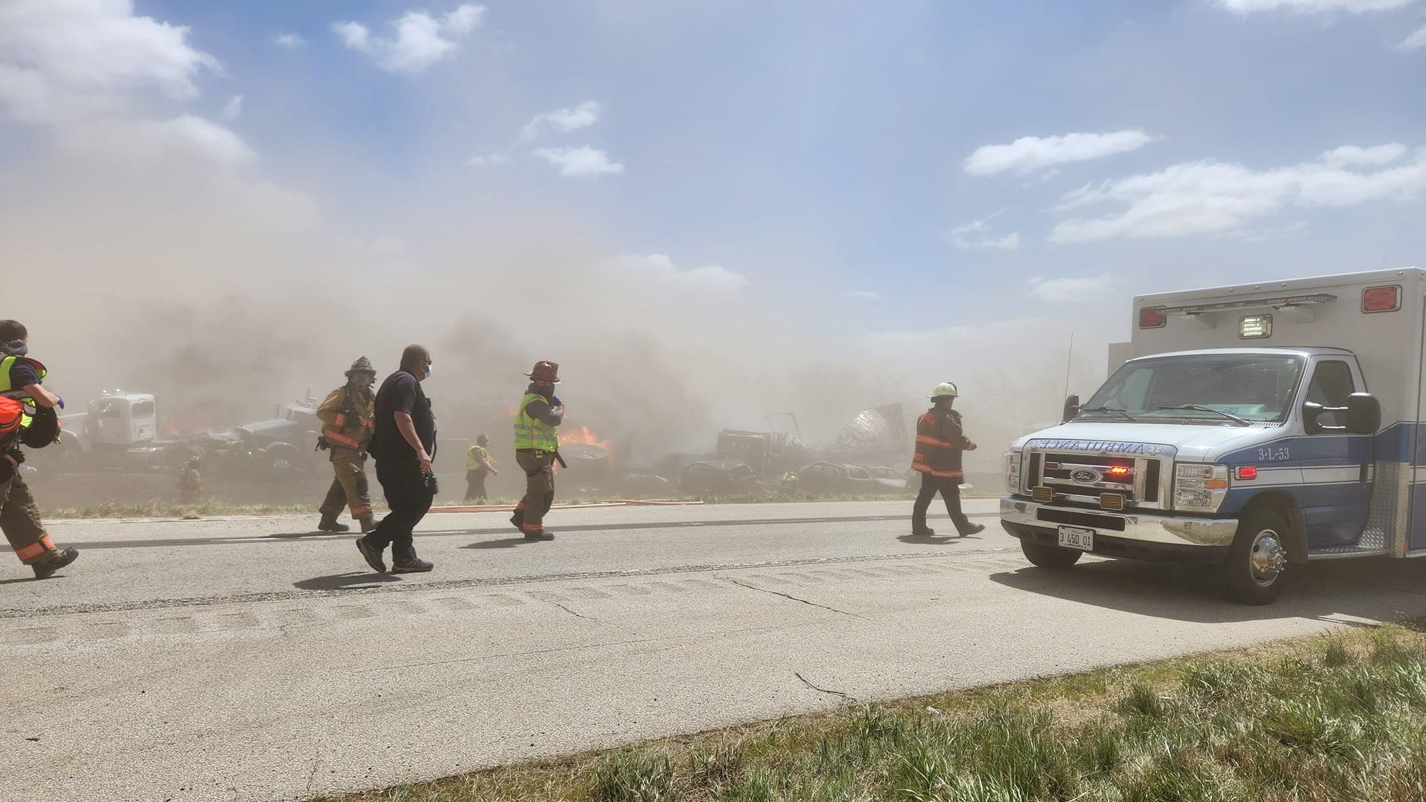 The crash involved 40-60 cars and multiple lorries with trailers, and occurred just after 11am CT (4pm GMT), according to Major Starrick.