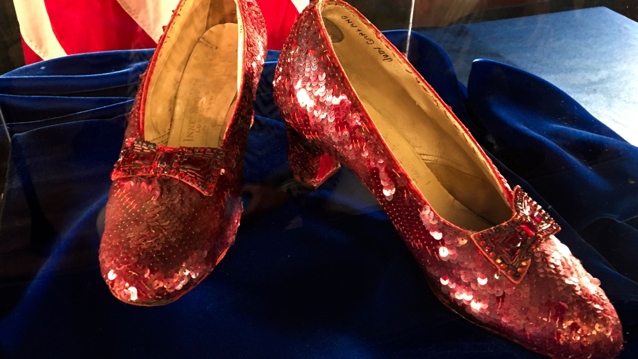 The slippers were on loan to the Judy Garland Museum when someone climbed through a window and broke the display case, prosecutors said when they were recovered in 2018.