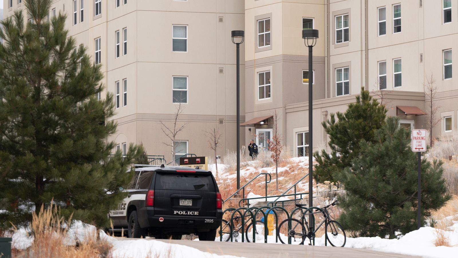 The unnamed victims were found dead by officers, who responded to reports of a shooting at the Alpine Village campus, part of the University of Colorado, in Colorado Springs, at around 6am on Friday.